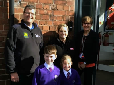 David Stapleton and Era’s Tania Tams with Mrs. Grundy and pupils at St Michael’s First School