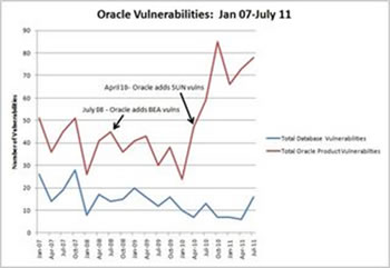 The July 2011 Oracle vulnerability announcement contains fixes for 78 vulnerabilities in total, 16 of which are in the database server product.