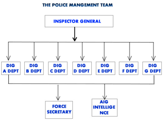 But Whilst Abba continues to deceive himself with his unrealistic dreams, I 'd like to ask: Where will the next IGP after him come from - Jigawa, Zamfara, Kano? Some years back when I pointed out this loapsidedness in the police hierarchy, they cleverly removed the names from their website, but later returned the Police Management Team (PMT) with only their titles without letting people know who was occupying what post, a situation which has continued till date as shown in the organogramme below. Now is the time to let us have the names of all that make up the PMT in public domain.