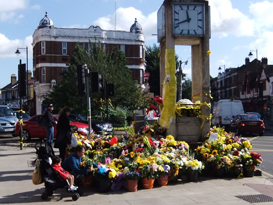 At the time of writing grief and support are being expressed in the bunches of flowers, candles and messages which have been placed in sublime profusion around Hanwell’s most well known landmark, the Hanwell Clock Tower.