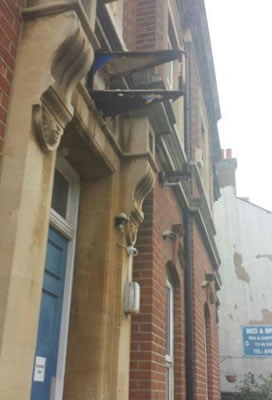 Sign smashed, doors closed; a forlorn police station awaits developers. Photo: Chris Hobbs