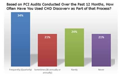 Questionnaires were distributed globally to over 1200 QSA’s, ISAs and organizations who are required to comply with PCI for the storage, PCIQ3processing and transmission of CHD. The survey found that while the majority of auditors regularly use CHD discovery to prove that CHD does not exist outside of the defined card holder data environment (CDE), 44% ‘rarely or never used’ the process. Providing ‘verification and evidential proof that no CHD exists out of scope’ is a prerequisite of the PCI standard and could be a contributing factor to high assessment failure rates as reported in the 2014 PCIQ5Verizon PCI Compliance Report.