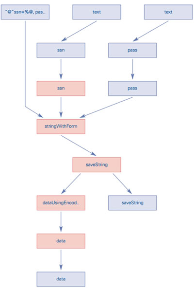 Figure 1: Snapshot of a graph display of ‘insecure data storage’ vulnerabilities that were found in an Android application.